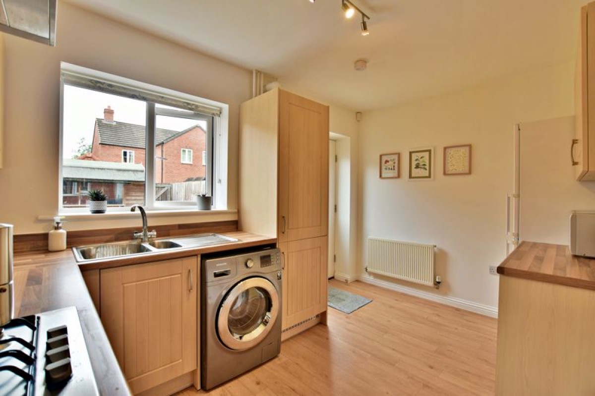 Having a range of base and eye level units with counter worktops, space and plumbing for appliances, sink and drainer unit, integral oven with 4 ring gas hob and extractor hood over, hidden Potterton combination boiler, uPVC double glazed window to rear aspect, composite door to rear aspect leading onto the rear garden, a single radiator and vinyl flooring.